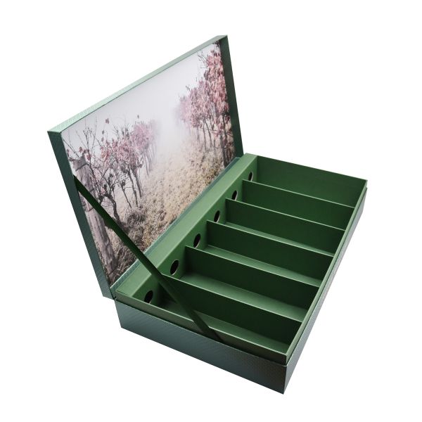 High-End Green Customizable 6 Bottles Of Cardboard Wine Gift Box